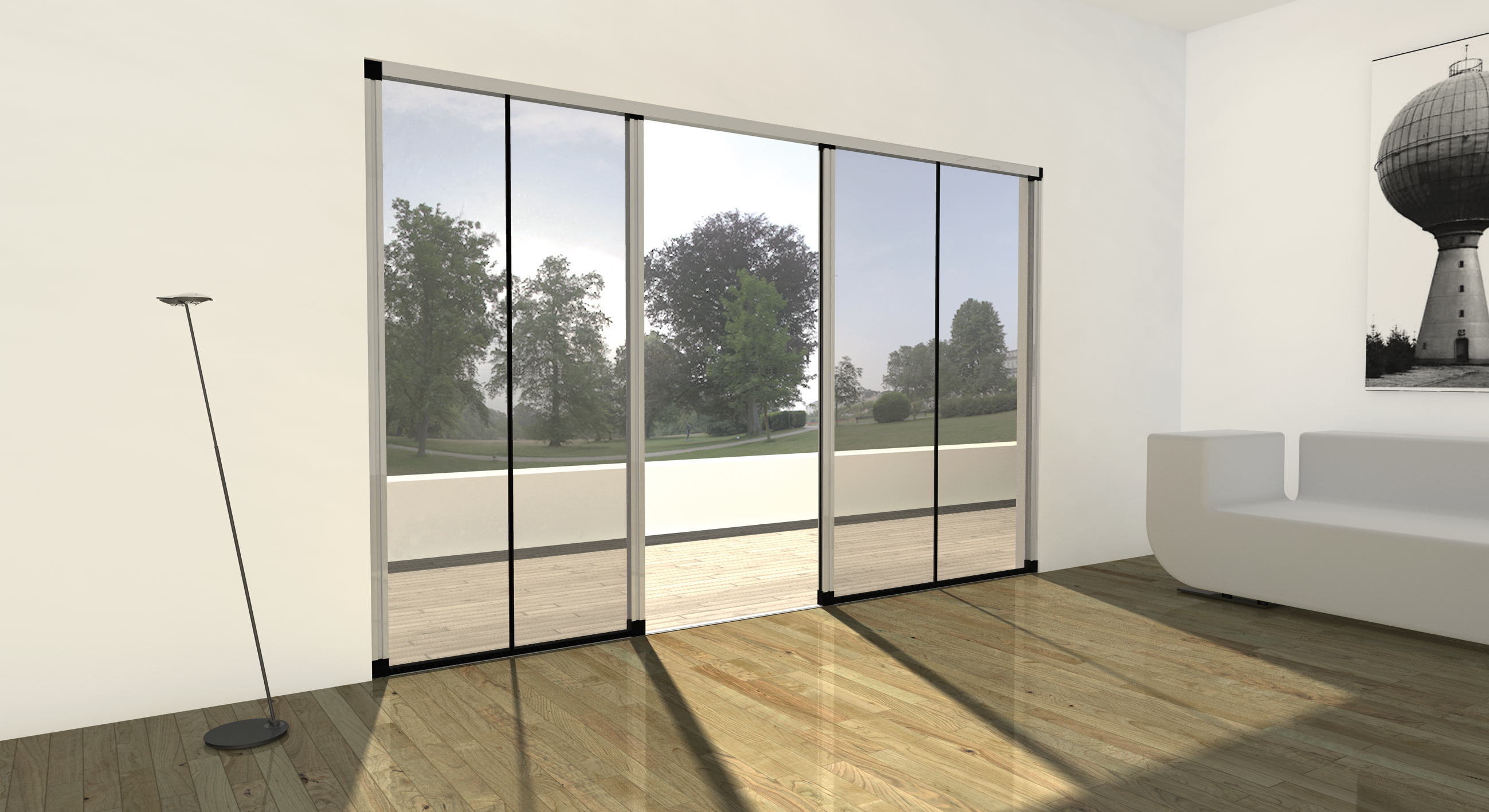 Roller Scorpion is an innovative horizontal insect screen system. Suitable for French doors and windows, the product is characterized by the presence of a wind resistant roller pipe and the absence of a low guide. Equipped with rollers and a spring, it achieves a smooth and accurate rolling back. This product can reach 3,6m in width and a height of 3m. Black and Grey net available.